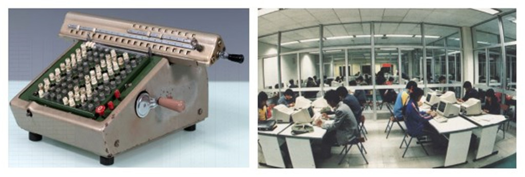 球盟会早期科研用的手摇计算机 80年代的机房(当时大多数学生最早接触电脑的地方)