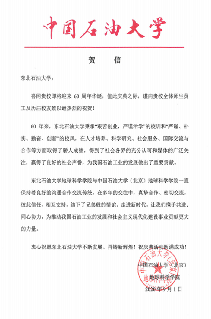 中国石油大学(北京)qmh球盟会亚博网址向我校发来贺信
