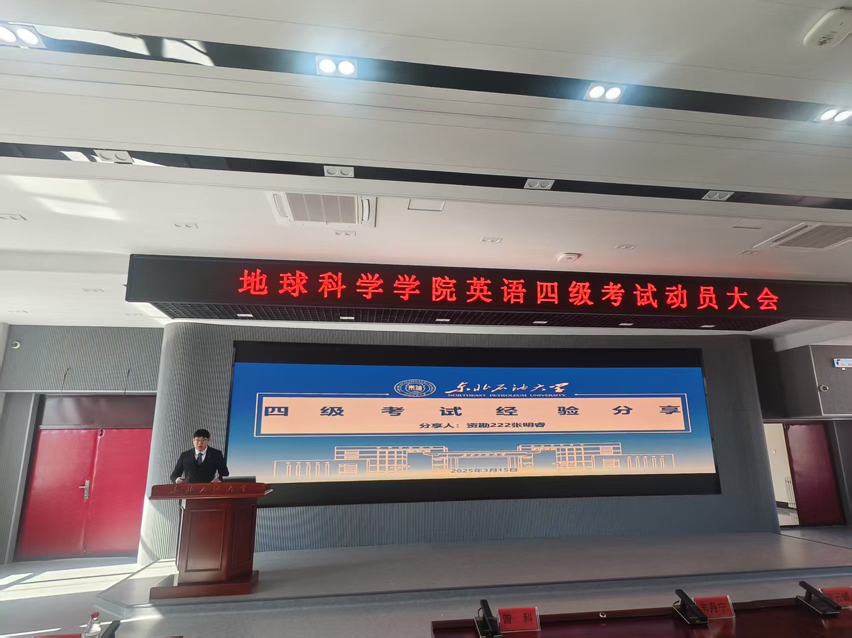 最后,在四级考试中成绩有大幅提升的张明睿同学为大家做了经验分享,他从个人的学习计划、时间管理、复习技巧等方面出发,为同学们提供了宝贵的建议。