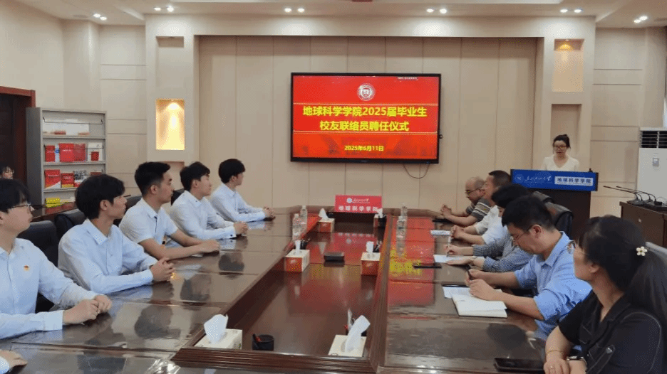 6月11日下午,qmh球盟会亚博网址在地科馆514会议室隆重举行2025届校友联络员聘任仪式。学院党委书记韦丹宁、院长孙雨、党委副书记王钢、勘查技术与工程专业系主任王宁、2025届本科辅导员王野、研究生辅导员历娜及全体2025届校友联络员齐聚一堂,共同见证这一意义非凡的时刻。活动由学工办主任王野主持。
