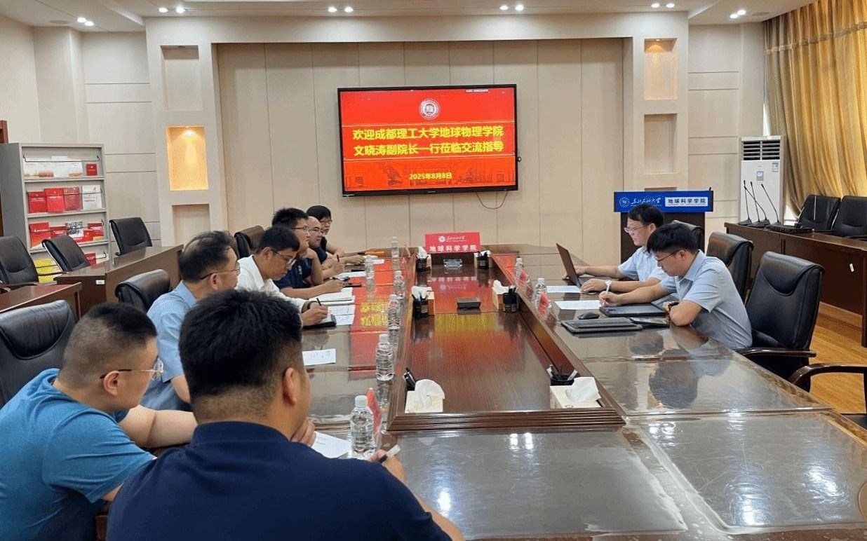 8月8日下午,成都理工大学地球物理学院副院长文晓涛一行到球盟会走访调研。副院长王海学、吴海光,勘技系主任王宁,勘技系教授王维红、刘淑芬等参加座谈。王海学主持会议。