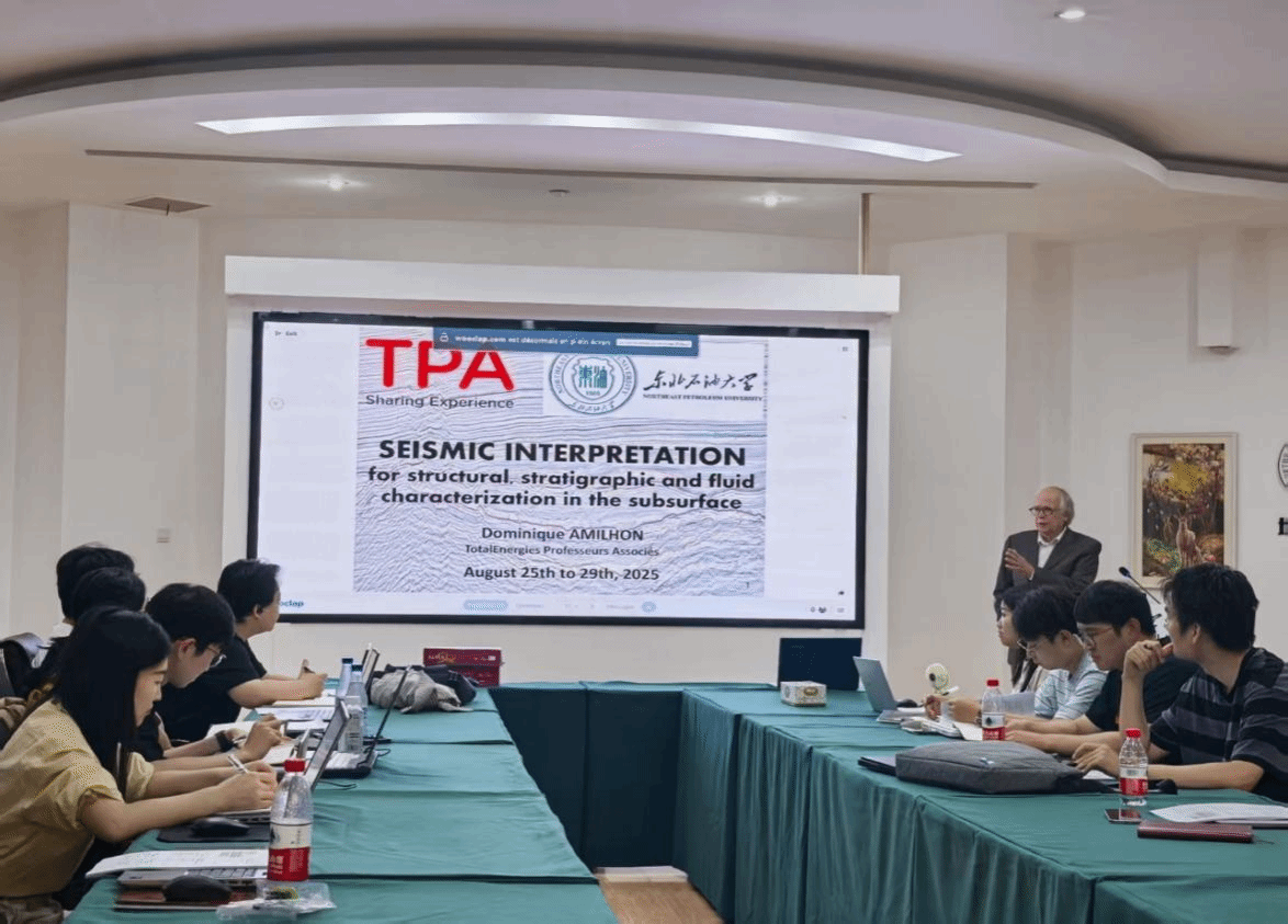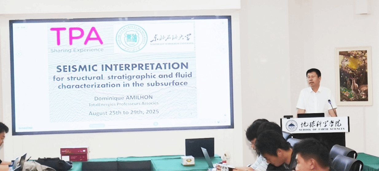 “育英筑梦工程·地科大讲堂”之“地震勘探新技术及在勘探开发中的应用”专题培训班于2025年8月25日至29日在球盟会qmhqmh球盟会亚博网址成功举办,qmh球盟会亚博网址特邀法国道达尔能源公司首席地球物理师Dominique AMILHON为师生主讲。在为期五天的培训中,来自qmh球盟会亚博网址、非常规油气研究院、环渤海能源研究院的教师代表以及40余名硕博士研究生积极参与,共同聚焦地震解释技术前沿,拓展国际学术视野,全面提升科研创新与综合实践能力。