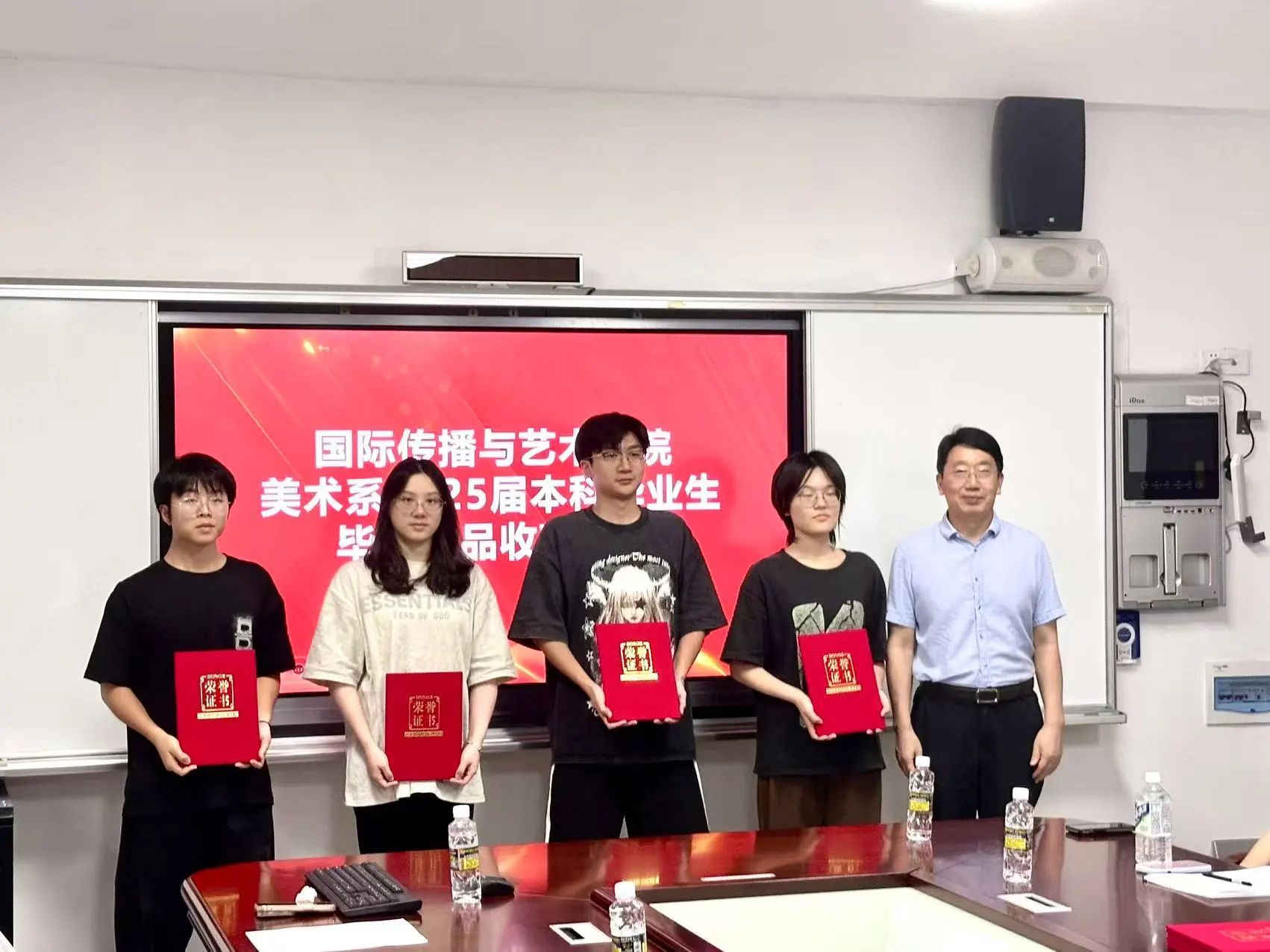 仪式上,郑立波院长对毕业生的艺术才华和努力表示高度赞赏,强调学院对美术教育的重视和对学生创作成果的认可。他对2025届毕业生的美好未来提出了殷切希望,并分享了自己的大学故事和生活。院长表示艺术是时代的镜像,是思想的凝练,更是同学们的精神灯塔。作品被学院收藏是同学们的荣耀,更是连接母校的情感纽带,为自己的一生种下美好记忆的种子。参加收藏仪式的同学代表表达了自己对学校、学院和老师的感激之情,表示自己的作品能被学院收藏感到非常荣幸,对自身具有很大的激励作用,感恩老师们的培养和指导。