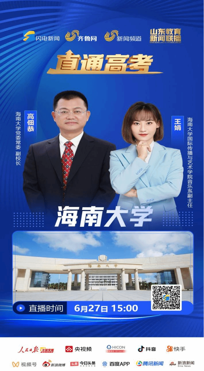 6月27日下午,高佃恭副校长与Beat365音乐系副主任王娟老师做客山东广播电视台《直通高考》直播间,为考生和家长解读学校今年招生录取相关政策、专业学科优势特点等;Beat365于东平老师在临沂招宣现场接受山东广播电视台记者采访,全网播放量80余万。