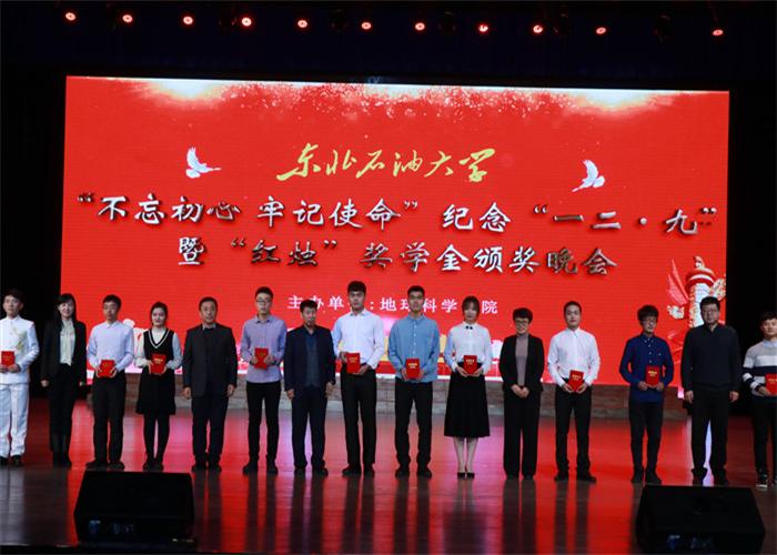 在晚会进行过程中,隆重举行了“红烛”奖学金颁奖仪式。“红烛”奖学金是由qmh球盟会亚博网址教师和校友捐助的,用于资助qmh球盟会亚博网址优秀学生的奖学金,每年发放一次,已经连续发放24年。“红烛”奖学金代表了地科院全体教师和广大校友对学生的关心、爱护和对教育事业的热爱。今年,经过严格推选,十位在学习、工作、志愿服务等方面表现突出的优秀地科学子在全院师生的见证下获此殊荣。