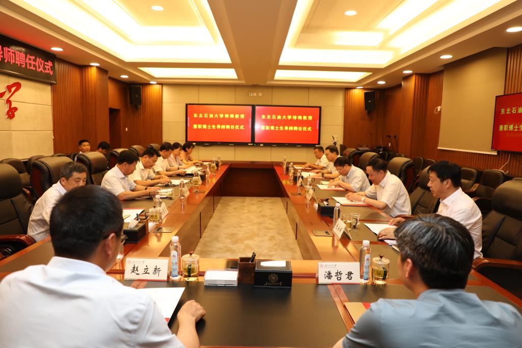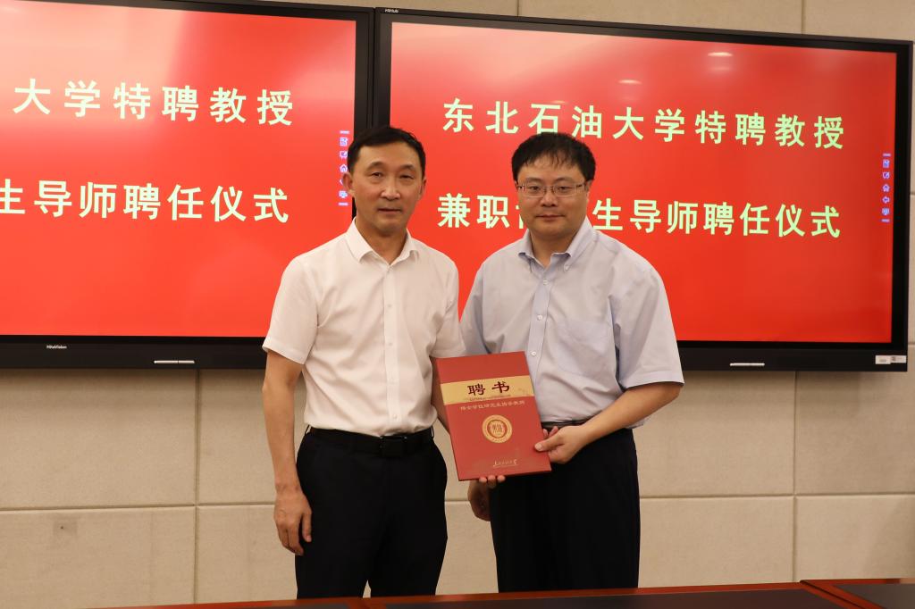 (文/图 吕鸿浩)7月16日,我校在机关5楼会议室举行聘任仪式,大庆油田党委常委、大庆油田有限责任公司(大庆石油管理局有限公司)副总经理兼总地质师何文渊受聘为我校特聘教授、兼职博士生导师。大庆油田有限责任公司首席技术专家、我校提高采收率研究院名誉院长程杰成,大庆油田有限责任公司技术发展部主任王刚,我校领导孙明学、蒋明虎、高洪峰、董宏丽及科研处、人事处、研究生部、qmh球盟会亚博网址、石油工程学院、非常规油气研究院等单位相关负责人参加聘任仪式。副校长高洪峰主持聘任仪式。