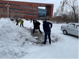 2021年11月8日-10日,一场突如其来的暴雪袭击了美丽的百湖之城大庆,路上积雪达到了近30厘米深,给市民的生活出行带来了很大的麻烦。为响应大庆市的清雪号召,2021年11学10日上午10点勘查技术与工程系教师党支部组织支部成员在qmh球盟会亚博网址门前到主干道方向进行了清雪志愿活动。支部成员纷纷放下手中的工作,拿着工具参与到清雪志愿活动中来。
