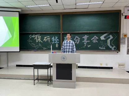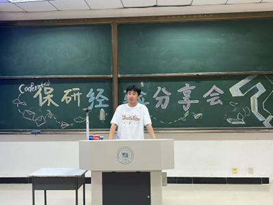 第二位为大家分享经验的是来自资源勘查技术与工程20-1班的林志远同学,他以优异的成绩成功保研到球盟会qmh。林志远在刘兴政分享的经验的基础上,又结合自己的保研经验,为在场的同学们补充了一些保研方面要注意的细节以及保研到哪个学校对我们所学专业更有优势。