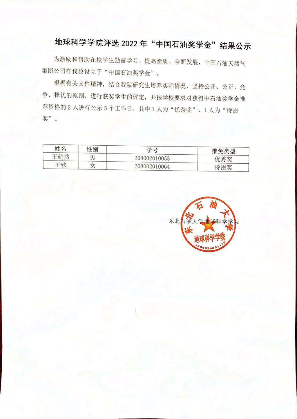 qmh球盟会亚博网址2022年中石油奖学金评选结果公示