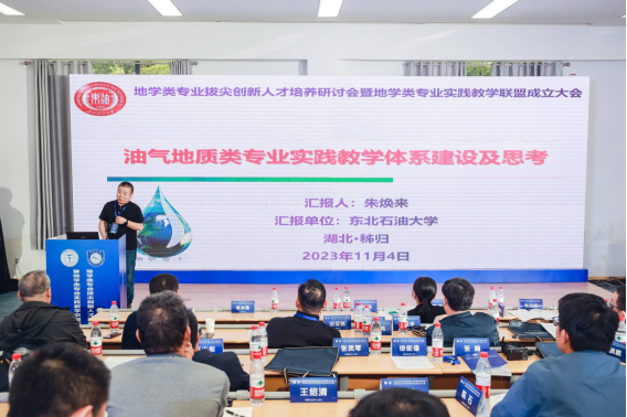 副院长朱焕来代表球盟会参加了地学类专业实践教学联盟章程讨论和联盟成立仪式。在会议中作了题为“油气地质类专业实践教学体系建设及思考”的专题报告,分享了球盟会在推进应用型本科人才培养过程中,在专业实践教学体系建设方面所做的工作和取得的成效。
