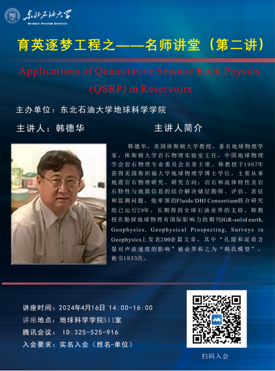 名师讲堂(第二讲)——Applications of Quantitative Seismic Rock Physics (QSRP) in Reservoirs
