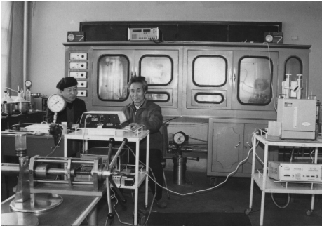 张守谦(右一)指导青年教师进行岩电参数测量