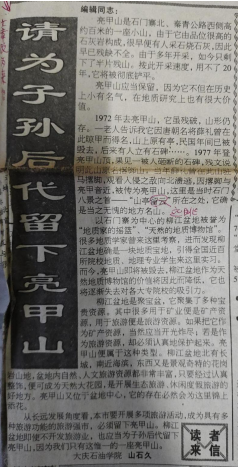 2001年2月,陈秉林撰写的《请为子孙后代留下亮甲山》一文刊登在《秦皇岛日报》上