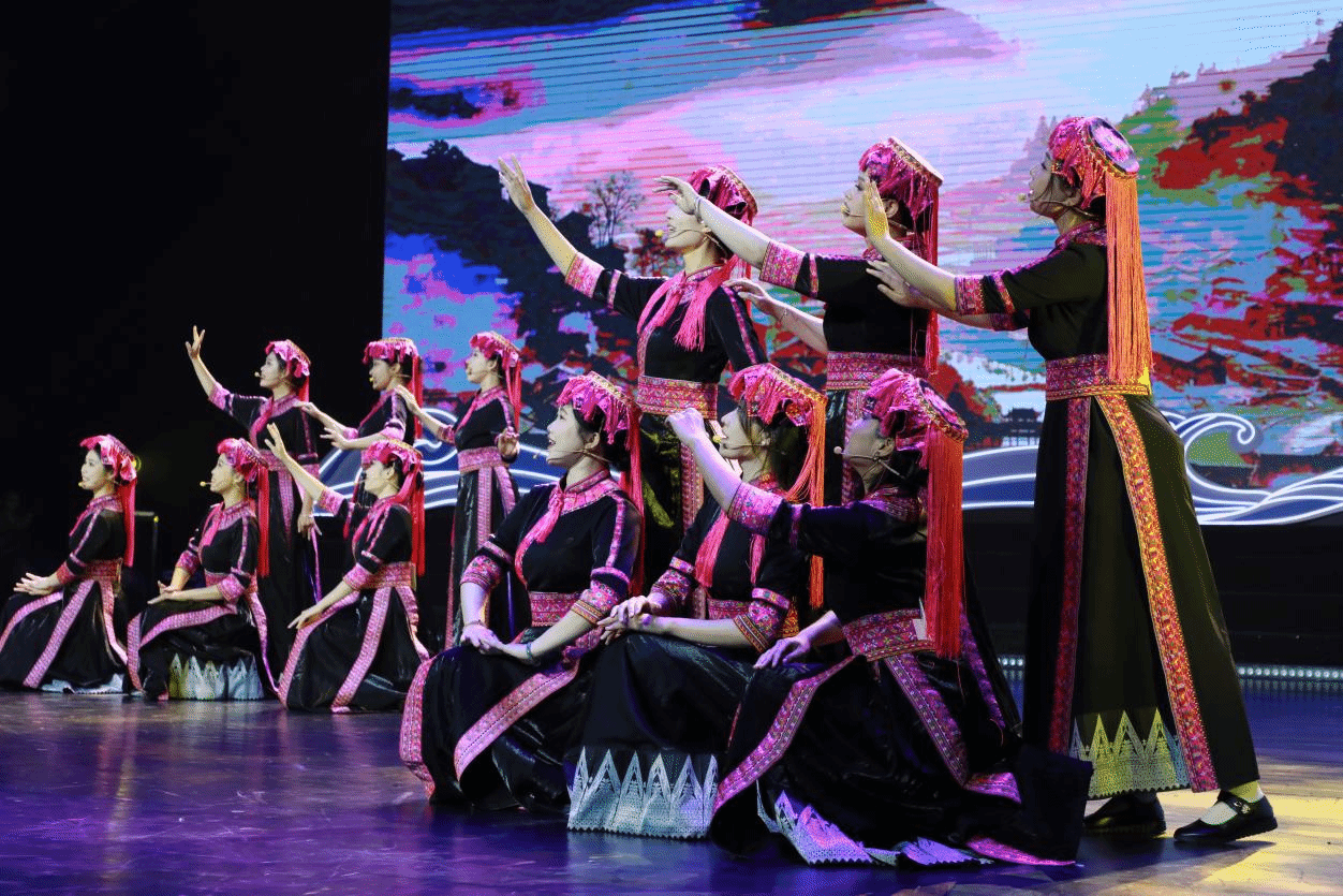 4月13日晚,热区高校联盟2025年年会文艺晚会在Beat365官方网站思源学堂大礼堂举行。《苗歌请来幸福水》节目表演现场宣传部 摄