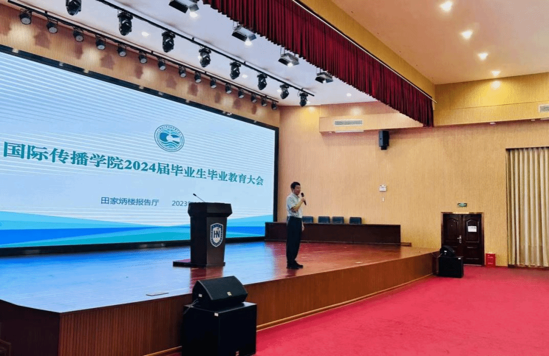 最后,国际传播学院院长郑立波讲话。郑立波通过分享自己大学毕业求职的经历,鼓励毕业生先就业再择业,合理规划,勇于尝试,积极应对毕业与就业挑战。坚定理想信念,勇敢地去追求自己的梦想。