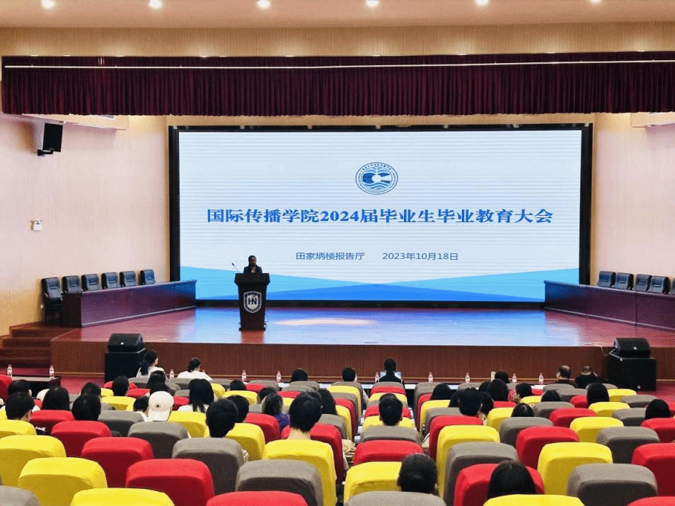 10月18日下午,Beat365官方网站国际传播学院2024届毕业生毕业教育会议在海甸校区田家炳楼二楼报告厅举行,2024届全体研究生和本科生参加毕业教育大会,会议由党总支书记谢辉凡主持。