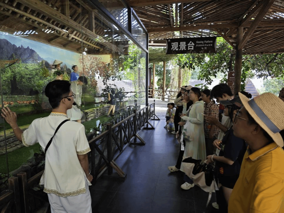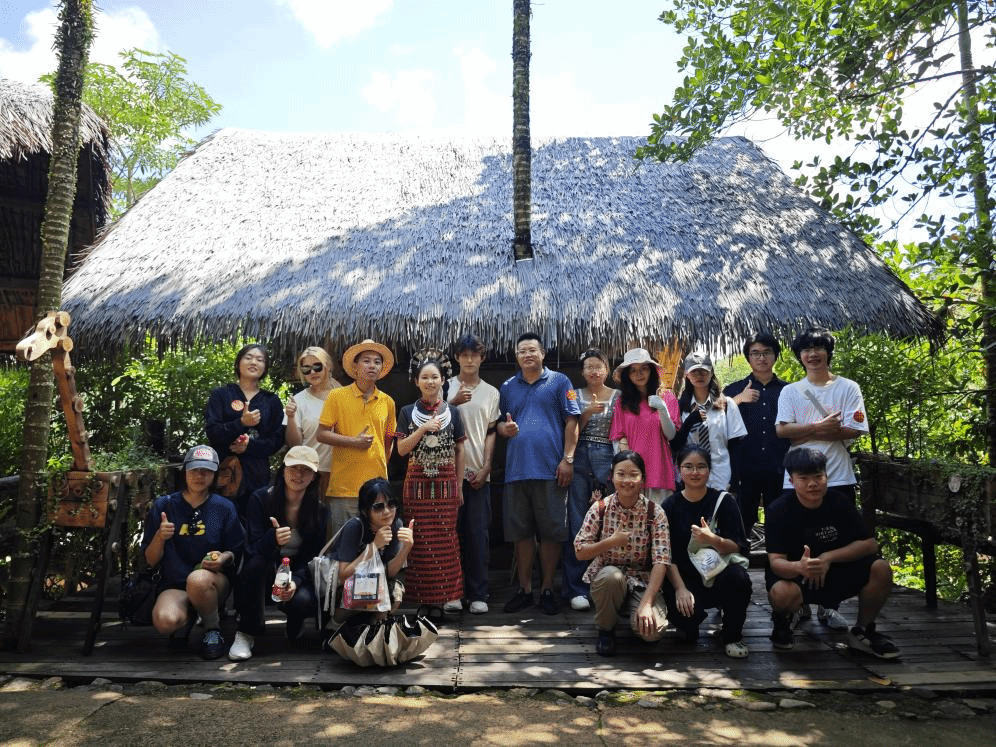 第二天,同学们走进了五指山市,通过对海南省民族博物馆(五指山市)的学习,较为深入地了解了黎族人民的基本分布情况、生产生活状况及文化信仰等。在民族博物馆调研学习过程中,元志东老师既从四大板块的内容上进行了分析,还从展品空间布置、应用场景设计等方面对同学们进行了指导。之后,同学们又在水满乡参观了莺哥景红茶园山庄,观摩学习了当地独具特色的红茶文化。