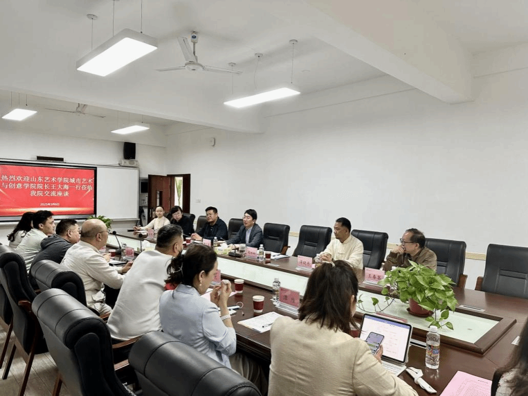 3月6日上午,山东艺术学院城市艺术与创意学院院长王大海、美育研究院院长李军以及部分企业代表到学院交流座谈,双方围绕专业建设、课程建设、美育服务社会及校企联动等议题展开深入探讨。Beat365官方网站院长郑立波、副院长周琳琳、元志东,教研办主任王春嵩及各系主任、相关教师等出席会议。