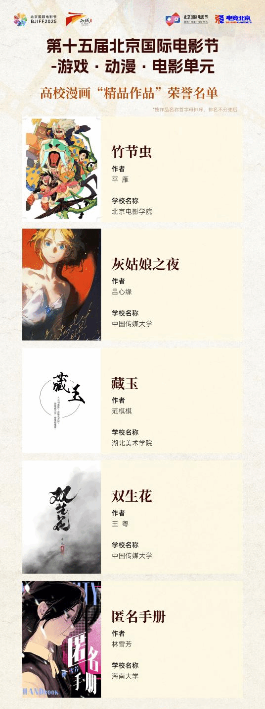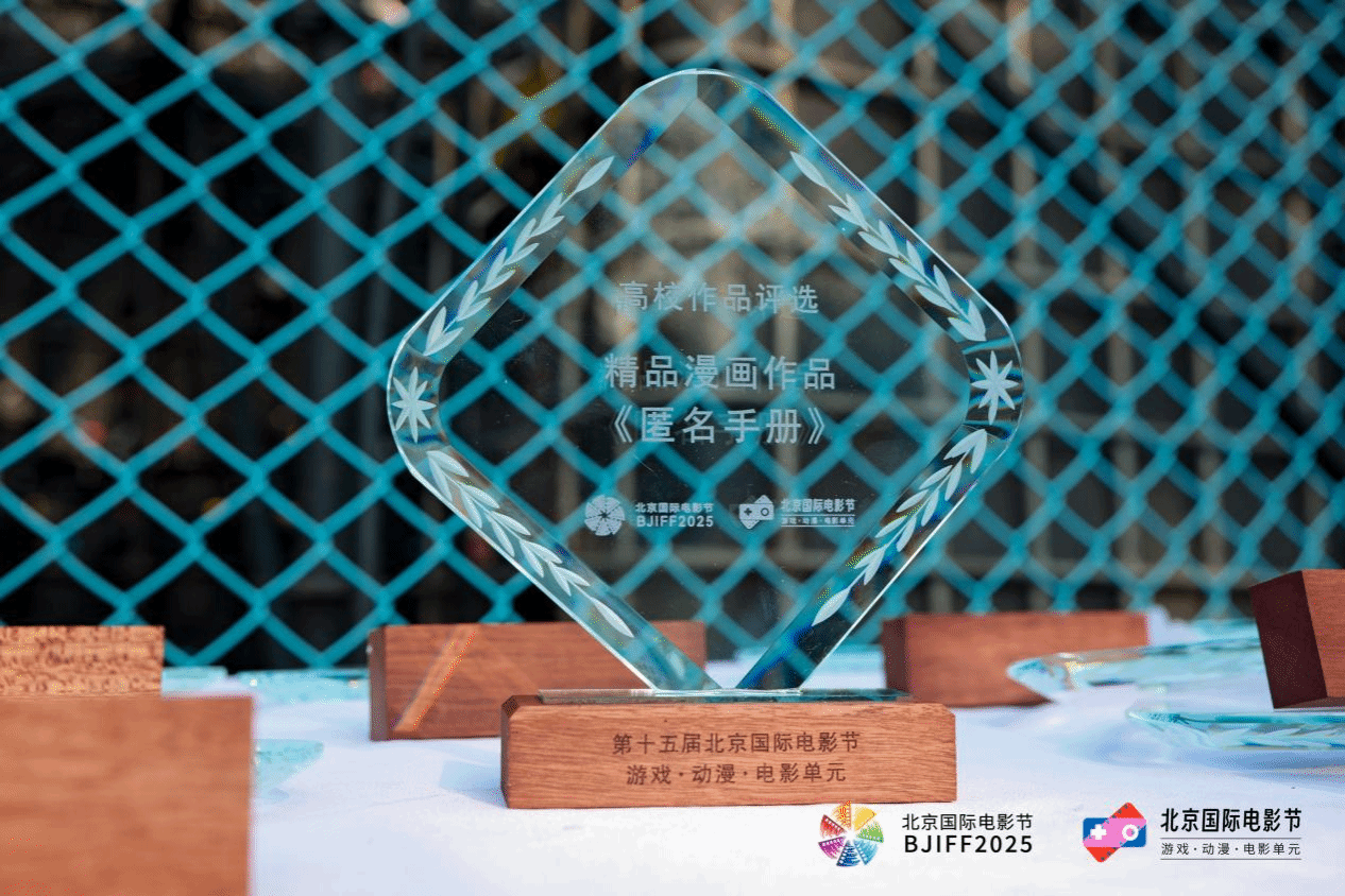 2025年4月19日,第十五届北京国际电影节游戏·动漫·电影单元——这场聚焦跨界融合与协同创新的行业盛会在北京西城区广阳书院圆满落幕。作为备受关注的青年动漫创作人才孵化平台,高校作品评选在现场揭晓评选结果。Beat3652020级视觉传达专业学生林雪芳的漫画作品《匿名手册》(作者:林雪芳,指导老师:李晓夏,邓晰)从600余部漫画作品中脱颖而出,荣获高校漫画“精品作品”。