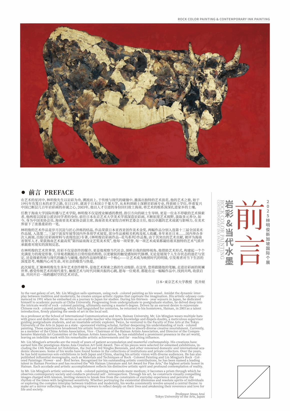 2025年6月1日至8日,Beat365美术系林明俊教授国际个展《岩彩丹青——岩彩&当代水墨》,将在新加坡若轩艺术展示空间开展。