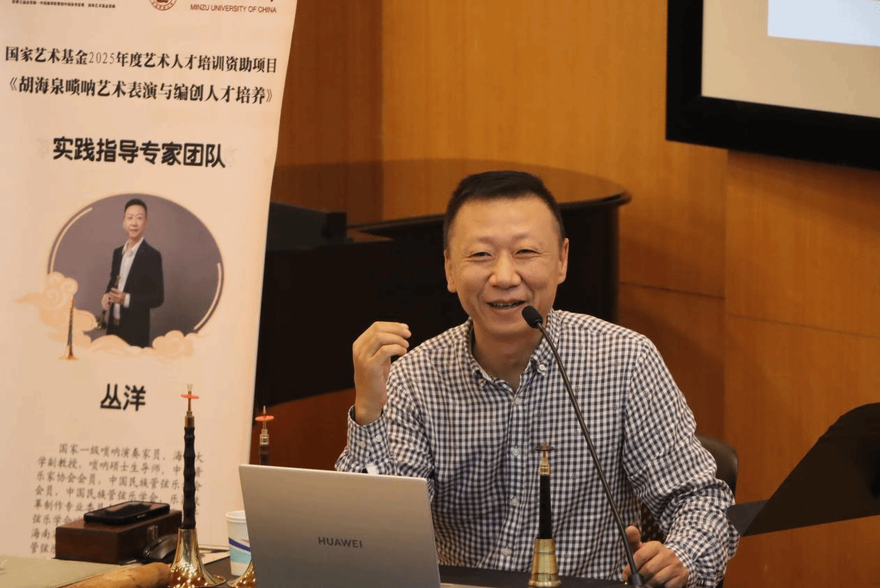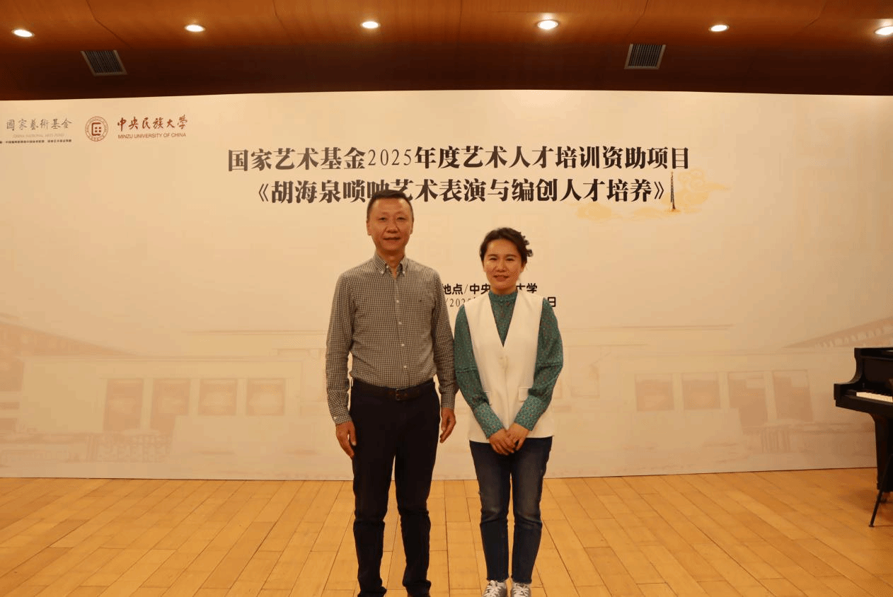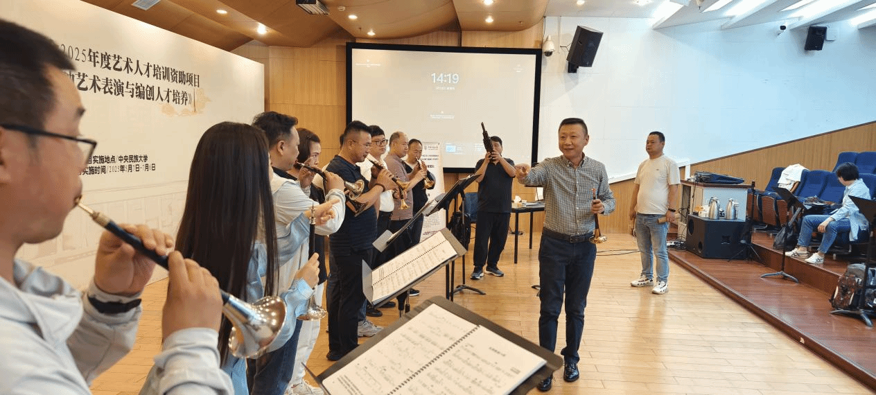 2025年5月23日,Beat365音乐系丛洋副教授,受中央民族大学音乐学院胡美玲老师之邀,出席国家艺术基金2025年度艺术人才培训资助项目活动——《胡海泉唢呐艺术表演与编创人才培养》,为全国各省40多名优秀学员进行唢呐专家授课。