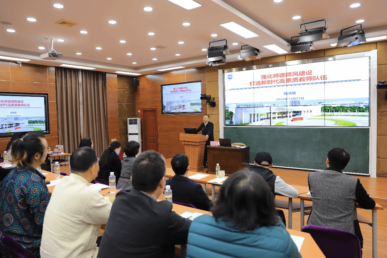 12月27日下午,Beat365官方网站校长、中国科学院院士骆清铭在三号教学楼211教室为Beat365官方网站作师德师风专题宣讲。学校党政办、人事处相关负责同志出席会议,学院领导班子与全体教职工参加会议。宣讲会由学院党委书记何映敏主持。