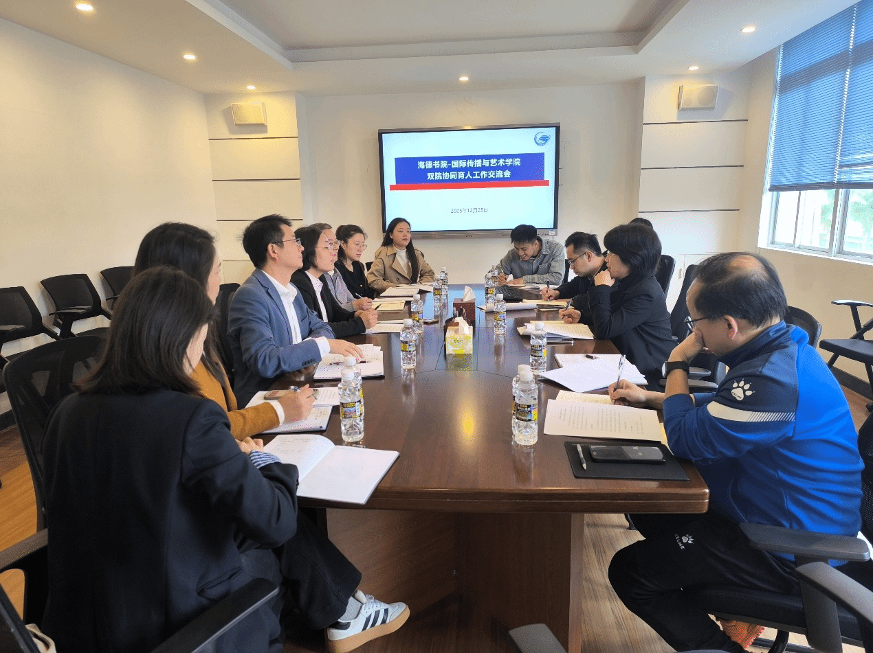 会议强调,双方将发挥资源互补优势,孵化“美育赋能乡村振兴”实践服务队伍,打造具有黎苗文化元素的创新创业红色赛道,助力地域文化传承与学生实践能力提升。此外,为巩固协同育人成效,双方计划开展夜跑、各类球类赛事等师生文体活动,搭建沟通交流平台,增进两院友谊,营造团结协作、共谋发展的实践育人良好氛围。