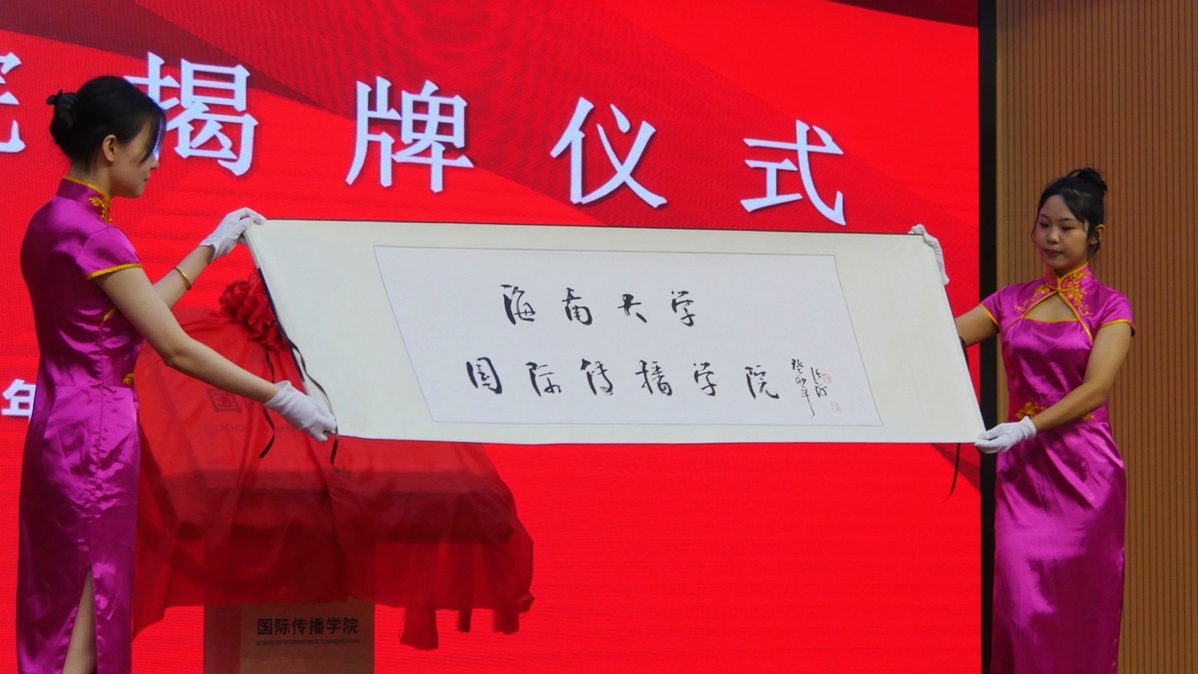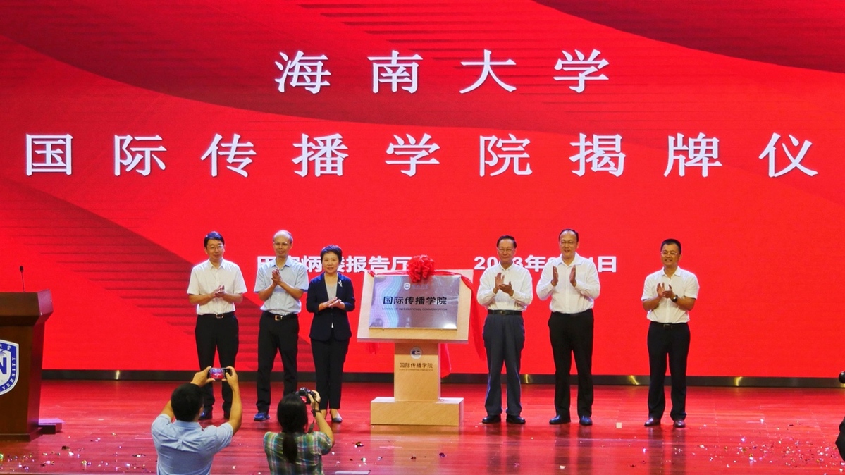 海南省委宣传部副部长蒋建民,海南省教育厅党委书记曹献坤,新华社海南分社社长陈良杰,Beat365官方网站党委书记符宣国,党委常委和校领导高佃恭、韩淑梅、谭勇出席,国际传播学院全体师生参加揭牌仪式。
