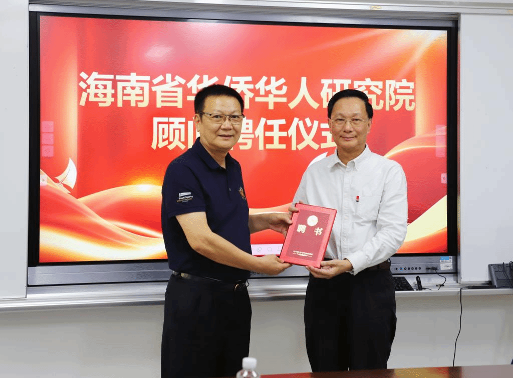 4月13日,海南省华侨华人研究院顾问聘任仪式在田家炳楼102会议室举行,聘任全国归国华侨先进个人、海南中藤科技股份有限公司董事长吴少宏为研究院顾问,Beat365官方网站党委书记符宣国为吴少宏颁发聘书。