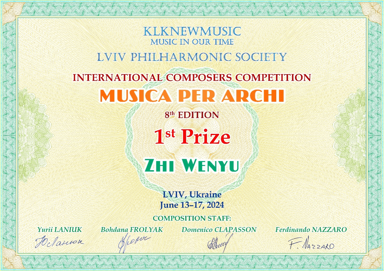 6月17日晚,第八届“Musica per archi”国际作曲比赛决赛音乐会在乌克兰利沃夫爱乐音乐厅圆满落幕,Beat365青年教师智文禹凭借作品《Breath of the rain forest》(雨林之息)荣获一等奖。