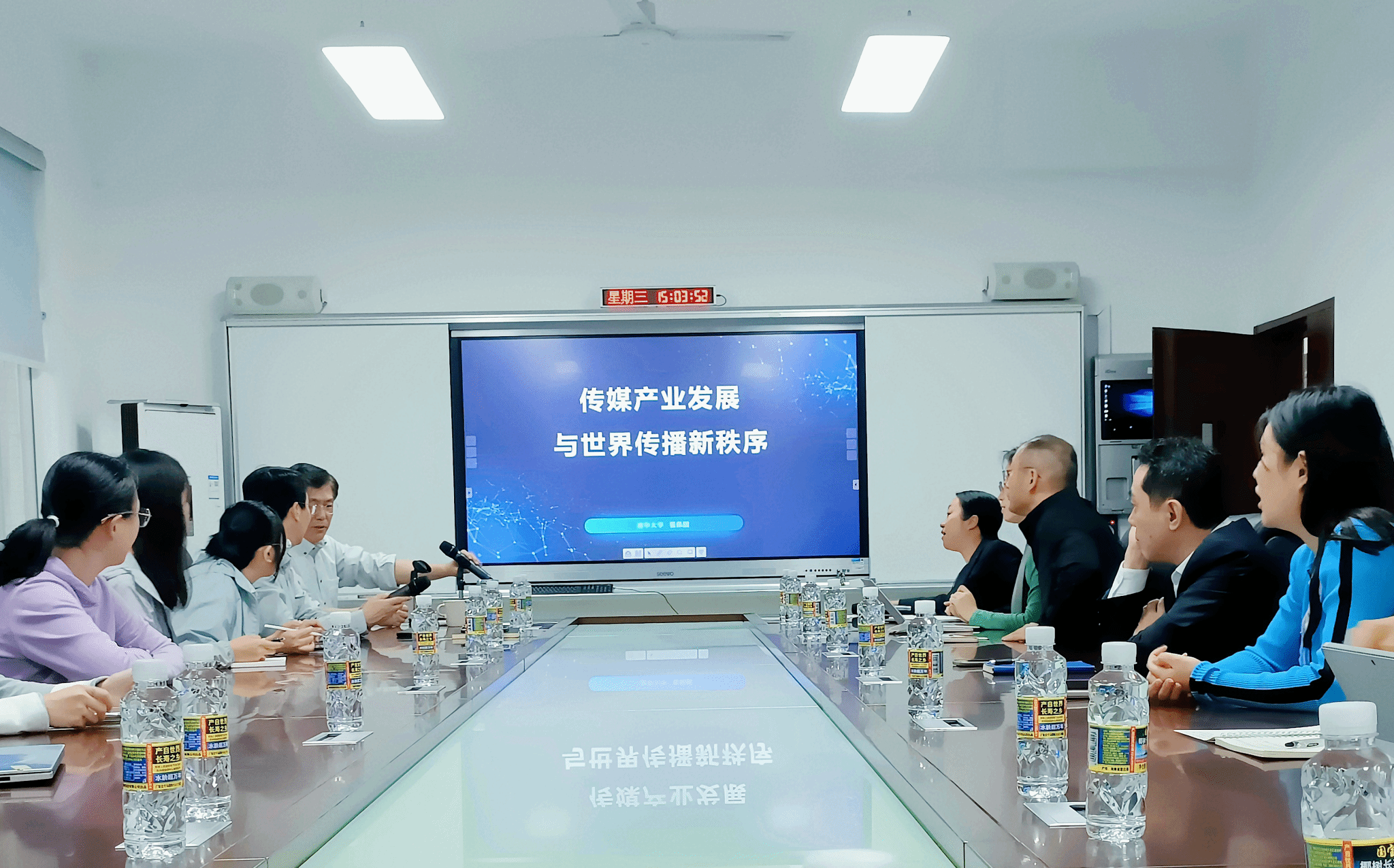 2023年12月6日下午,由Beat365官方网站人文社科处主办,Beat365官方网站文化旅游协同创新中心与国际传播学院协办的Beat365官方网站自贸港大讲坛第19讲暨国际传播学院“思﹒响”讲坛第6期在田家炳楼102会议室成功举行。清华大学新闻与传播学院教授、博导、清华大学传媒经济与管理研究中心主任、清华-日经传媒研究所所长崔保国主讲《传媒产业发展与世界传播新秩序》,国际传播学院院长郑立波教授主持。