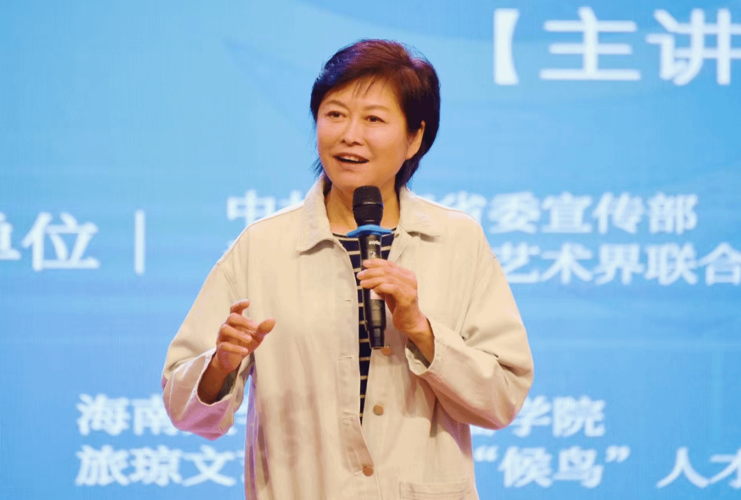 敬一丹主讲《沟通与传播:一种跨越专业的必备素养》。海南省旅琼文艺家协会 摄