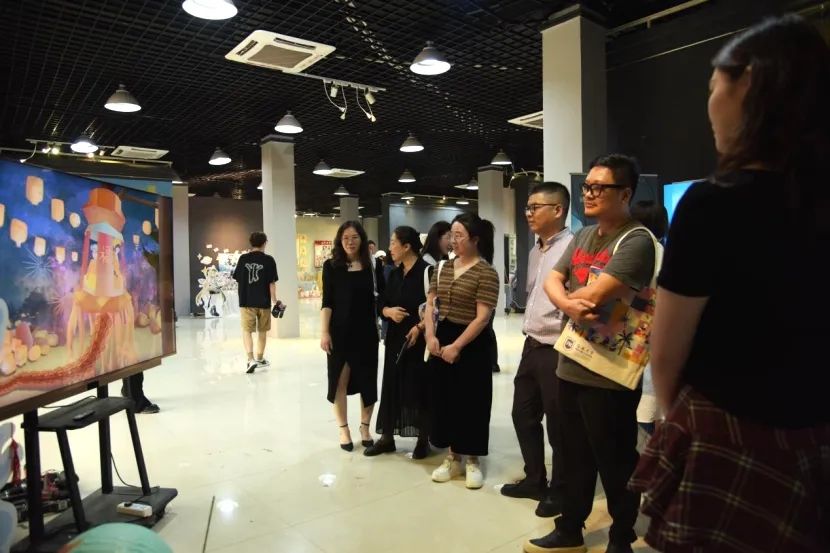 会议结束,专家一起参观了2021级研究生、2020级本科生的毕业设计展览。此次设计展览共有229组,本科生视觉传达专业120组,绘画专业58组,研究生艺术设计专业51组,包含国画、油画、雕塑、综合材料、品牌形象设计、旅游文创设计、包装设计、环境艺术设计、服装设计、动画等丰富多彩的内容。