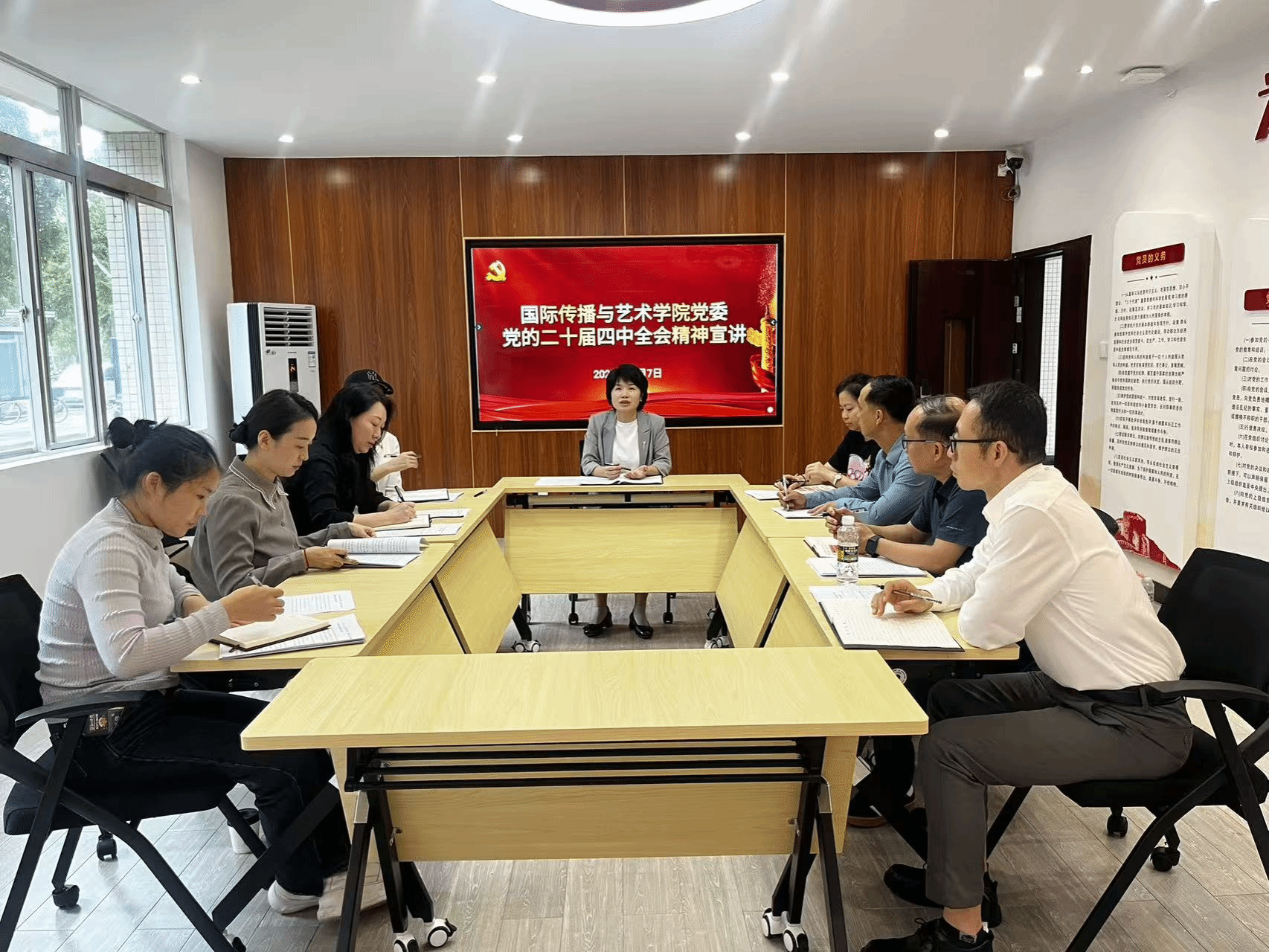 在各党支部的交流研讨中,教师党员结合国际传播与艺术的专业使命谈感悟、话担当。大家一致表示,要以全会精神为指引,将艺术创作与国际传播使命紧密结合,在跨文化交流的舞台上讲好中国故事,为提升国家文化软实力和国际影响力贡献力量。